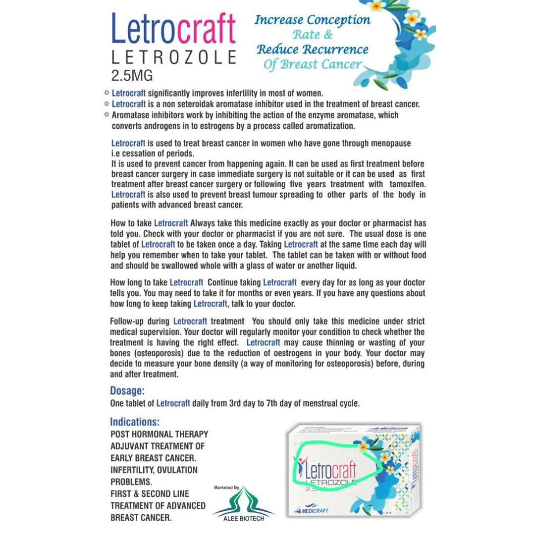 • Letrocraft is also used to prevent breast tumor spreading to other parts of body in patients with advanced breast cancer.